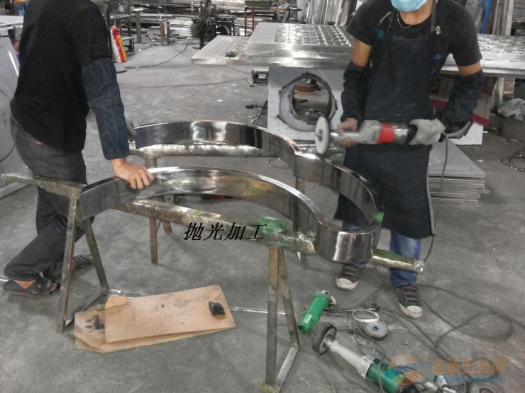 如果表面不平,先用角磨機裝砂布拋光片平整表面。然后用角磨機裝毛氈拋光片,先在拋光蠟上拋一下,讓毛氈片上布滿蠟,然后去打磨需要拋光的不銹鋼表面。