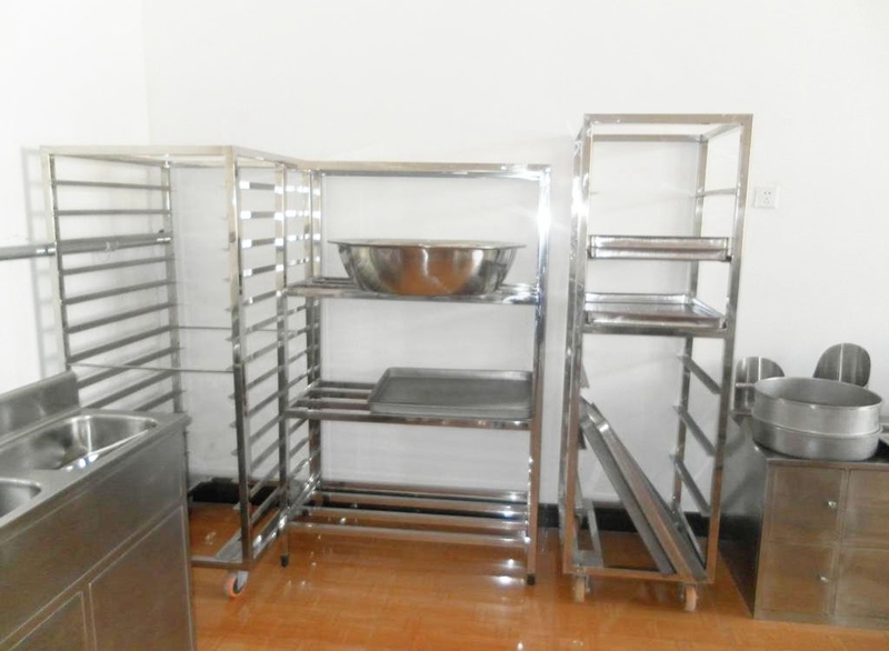 面包架的材質有很多種,最常見的還是木質和不銹鋼材質的居多,因為它有結構簡單,牢固耐用,不易生銹,易打理的特點。很多面包房和烤餅店都采用不銹鋼面包架,一般他們的底部都帶有萬向輪,可以隨意移動,很方便。產品的尺寸都是定制生產的,可以根據您店里的實際情況設計出合理的尺寸,充分的利用空間。