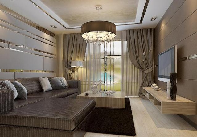 這樣的不銹鋼線條吊頂是不是讓整個天花板都生色不少?用不銹鋼來裝飾吊頂邊緣,就像是為整個家居天花板系上了一條銀亮的絲帶,時尚、美觀、大方。且與整體家裝風格相一致,搭配精美的水晶吊燈,營造的整個客廳時尚感爆棚。