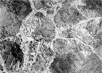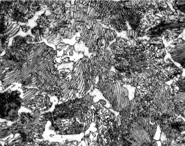 室溫下共晶白口鐵顯微組織如圖1.3.10所示。圖中黑色部分為珠光體,白色部分為滲碳體。