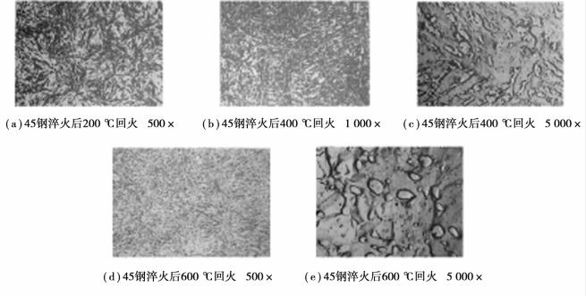 在此溫度范圍內(nèi)回火,可獲得回火屈氏體組織,該組織由極細(xì)粒狀滲碳體和針狀鐵素體組成,硬度為35~45 HRC。回火屈氏體具有較高的彈性極限和屈服極限,并有一定的韌性,多用于各種彈簧。