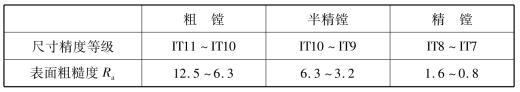 表5.2.1 車床鏜孔能達到的尺寸精度和表面粗糙度