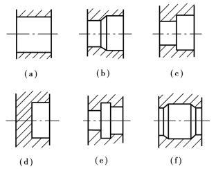 車床鏜孔與鉸孔相比,適應性較強,具體表現在:一把鏜刀可以加工一定孔徑和長度范圍的多種結構類型的孔,如圖5.2.7所示;能達到的尺寸精度和粗糙度R a值的范圍較廣。但對于直徑小于10 mm的小孔和長徑比大于5的細長孔鏜削較為困難。